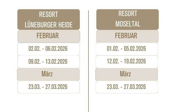 Sollte Ihr Wunschtermin hier nicht aufgeführt sein, ob in diesem Zeitraum oder die Monate danach, sprechen Sie uns trotzdem gerne an und wir prüfen Ihren Termin.