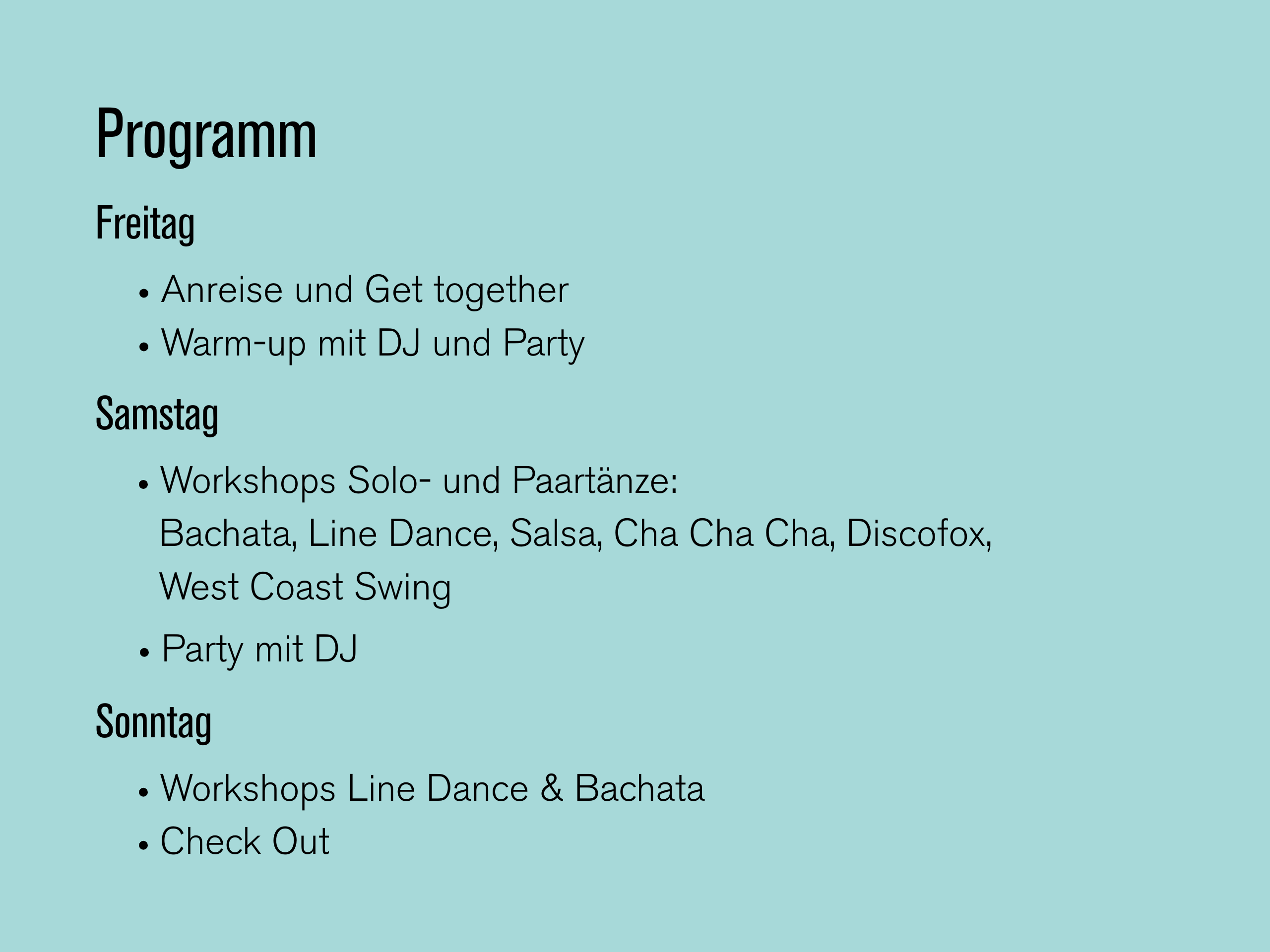Unser Tanzwochenende für alle, die Spaß an Tanz und Musik haben.